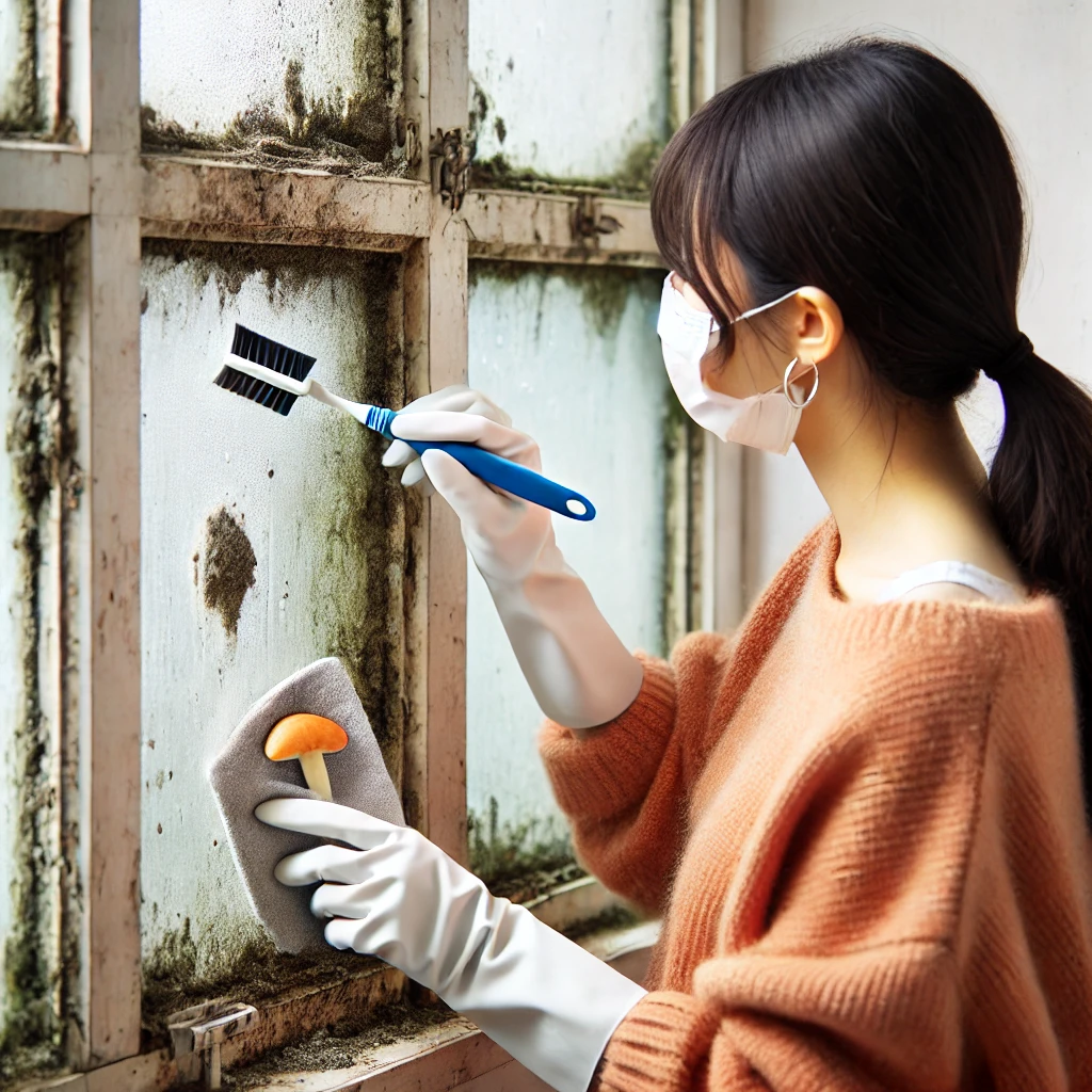 - 곰팡이 흔적이 있는 부분은 칫솔이나 전용 청소 솔을 이용해 문지르듯 세척합니다.