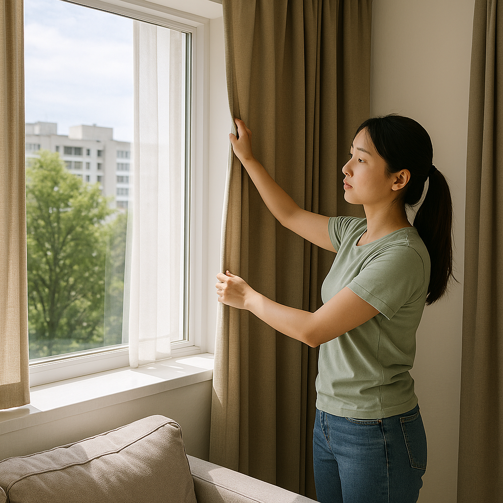 - 커튼과 창문을 적절히 활용하면 태양열 차단 + 자연환기 효과를 동시에 얻을 수 있습니다.