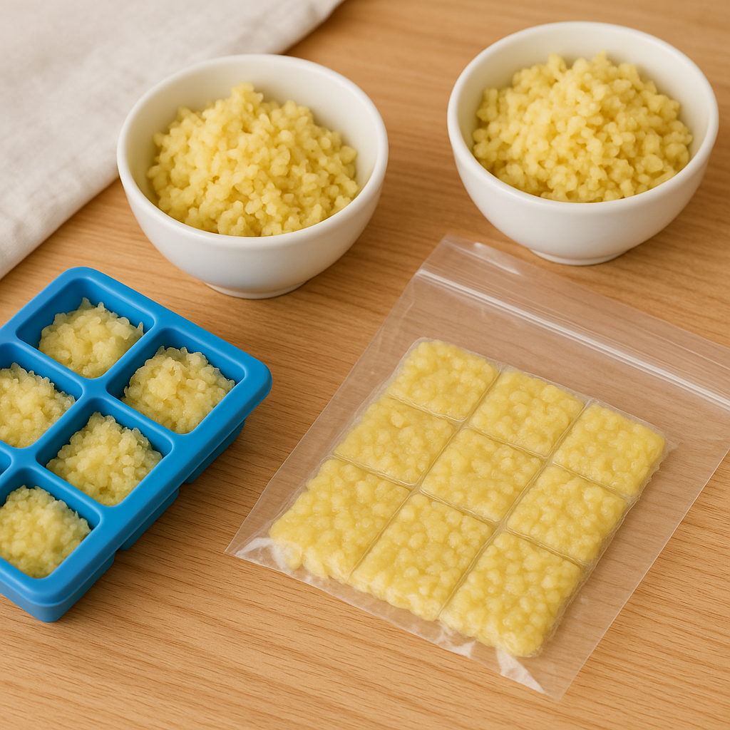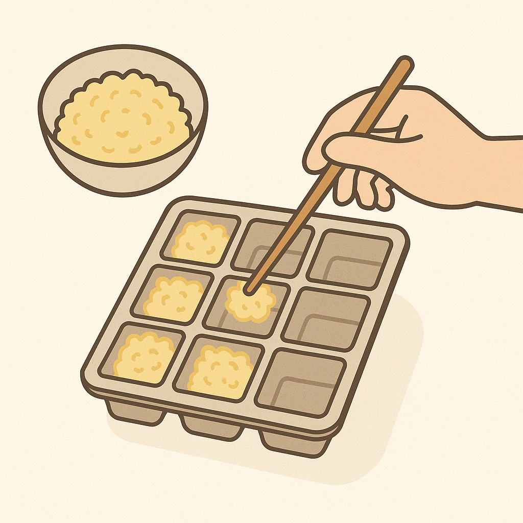 또 다른 방법은 실리콘 아이스큐브 틀을 활용하는 것입니다. 한 칸에 1티스푼 정도의 양으로 채워 넣고 냉동한 후, 완전히 얼면 틀에서 꺼내 지퍼백이나 밀폐용기에 담아 보관하면 됩니다.