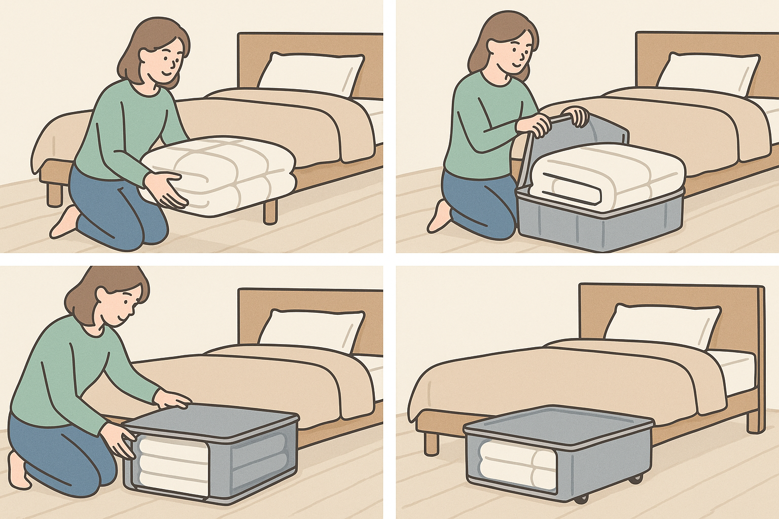 좁은 집에서 계절마다 바뀌는 이불을 깔끔하게 정리하기란 쉽지 않습니다. 특히 겨울 이불은 부피가 크고 여름 이불은 자주 꺼낼 일이 없어 자칫 방 안을 어수선하게 만들기 쉽습니다. 이럴 때 침대 밑 수납공간을 활용하면 효율적이고 위생적인 정리가 가능합니다. 침대 밑 수납함을 제대로 활용해 계절 이불을 보관하는 실전 팁을 소개합니다.