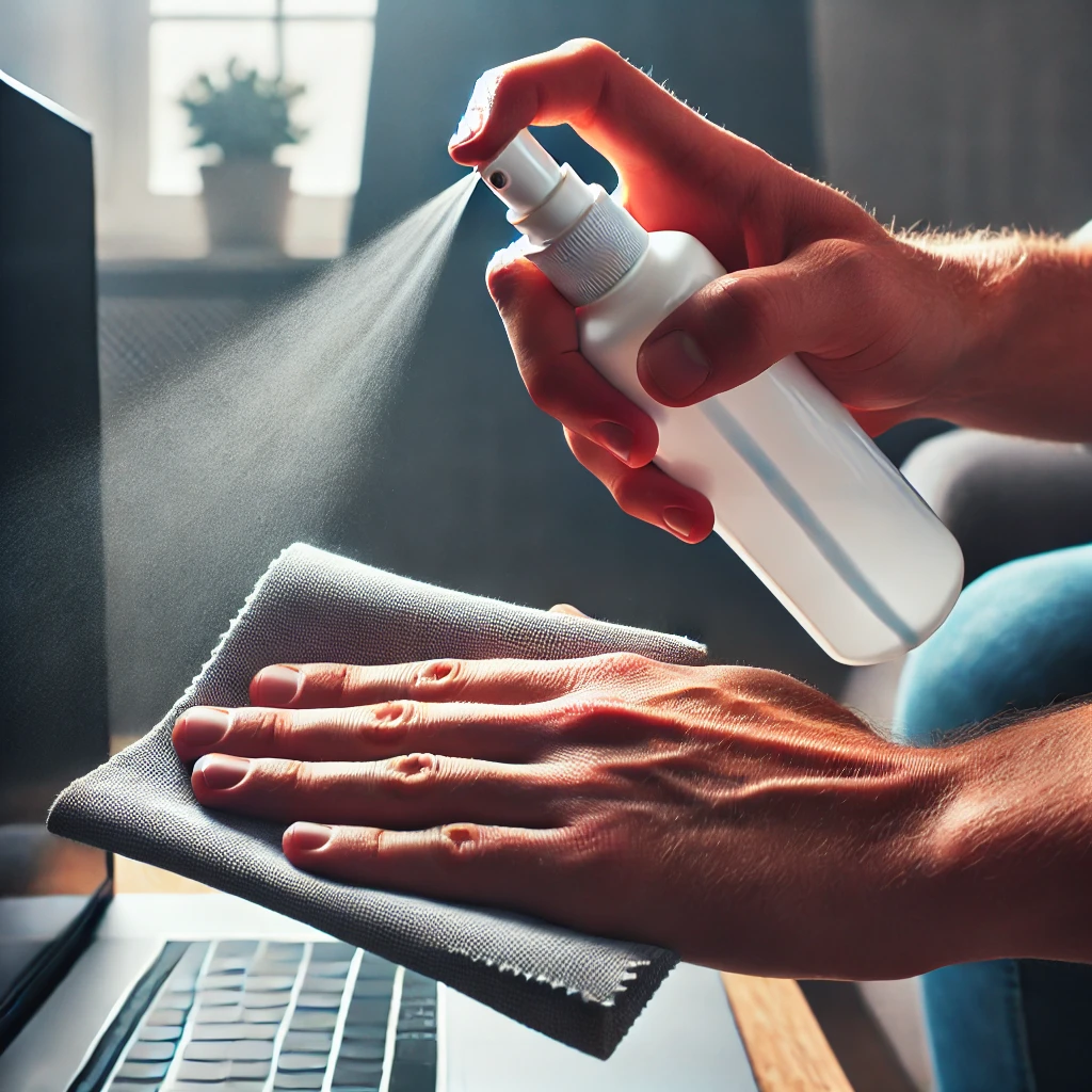 세정제를 직접 뿌리지 말고 천에 먼저 분사