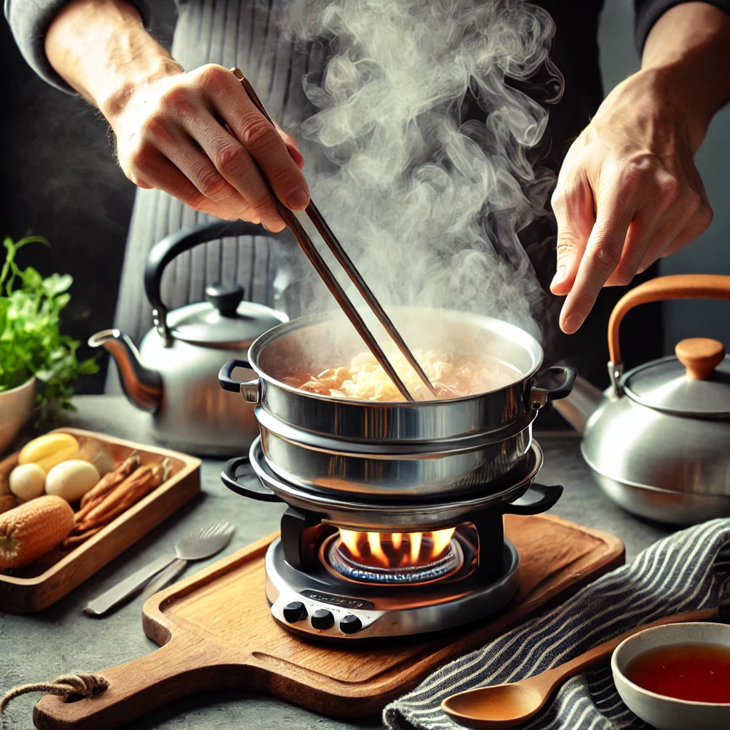 국물 요리나 수분이 많은 음식은 중탕(더블 보일러) 방식을 사용하면 촉촉하게 데울 수 있습니다.