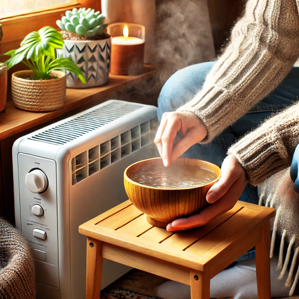 - 따뜻한 물을 담은 그릇을 난방기 근처에 놓기